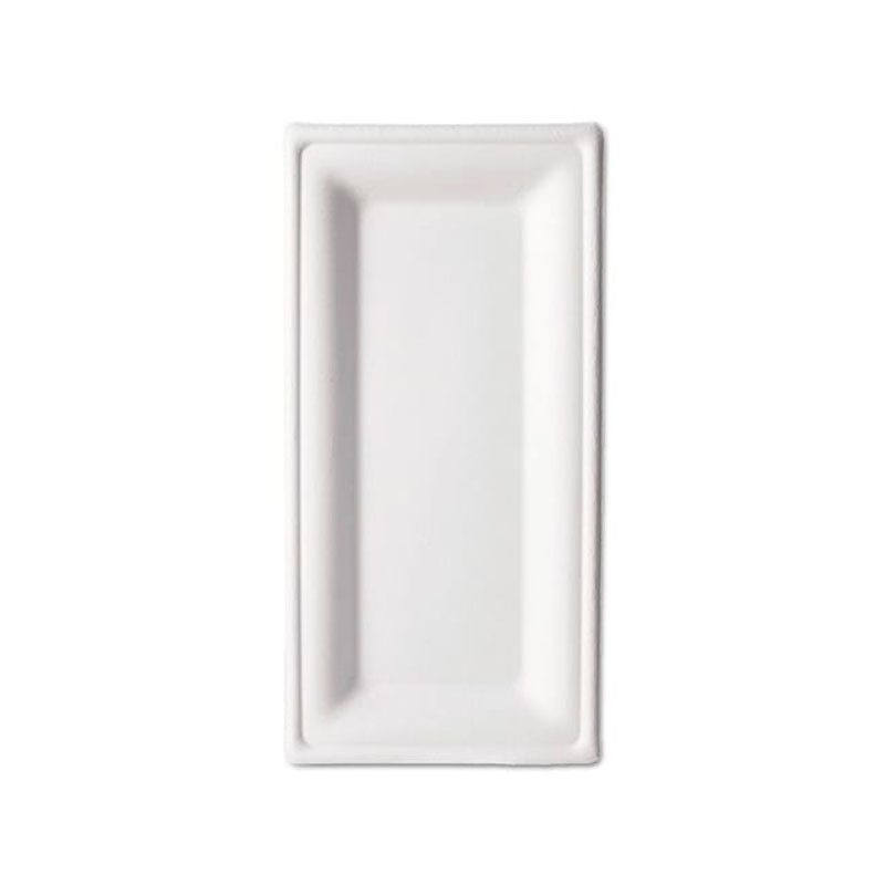 Bandejas de catering de bagazo para todo tipo de alimentos. Medida: 26×13 cm. Caja de 400 uds.