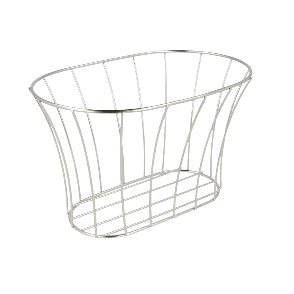 Elegantes cestas de acero inoxidable en color plateado, perfectas para presentar una variedad de platos en bares, restaurantes y locales de comida rápida. Parte de nuestra exclusiva colección «American Style», estas cestas suelen incluir una hoja de papel antigrasa en su interior, ideal para servir bocadillos, snacks, pollo, pescado y otros alimentos que puedan desprender aceites o grasas. Añade un toque moderno y práctico a tu servicio de alimentos con estas cestas de alta calidad.