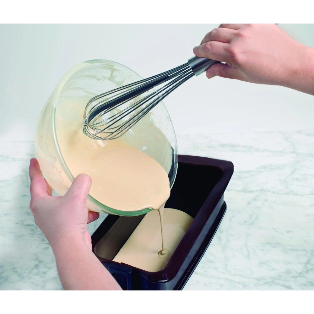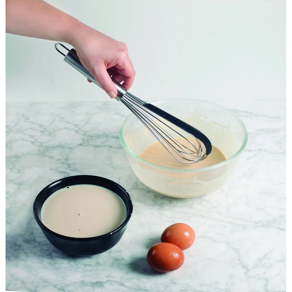 Su diseño 2 en 1 te permite batir y recoger toda la mezcla del bol con una sola herramienta, ahorrando tiempo y esfuerzo en la cocina. Además, su mango ergonómico y antideslizante garantiza un buen agarre y comodidad durante su uso.