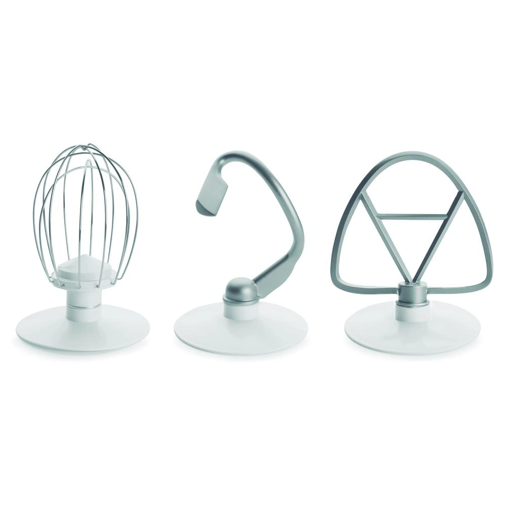 Incluye 3 accesorios para batir, amasar y mezclar, y cuenta con un brazo basculante de 35º para acoplar los accesorios de forma sencilla. La tapa transparente anti-salpicaduras con ventana permite añadir ingredientes durante el uso, y las ventosas de sujeción garantizan una perfecta estabilidad durante su funcionamiento.