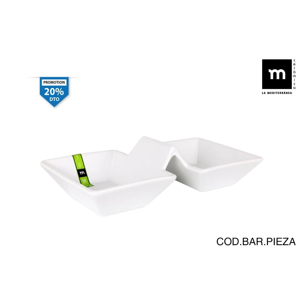 El bol doble blanco 24.3×12.5x6cm Yummy M porcelana es un complemento de mesa ideal para cualquier establecimiento de hostelería. Con unas medidas de 24.3×12.5×6 cm, este bol doble es perfecto para servir aperitivos, salsas, o cualquier otro tipo de alimento. Su diseño en porcelana blanca le da un toque elegante y sofisticado a la presentación de tus platos, mejorando la estética de tus mesas y la experiencia de tus clientes.
