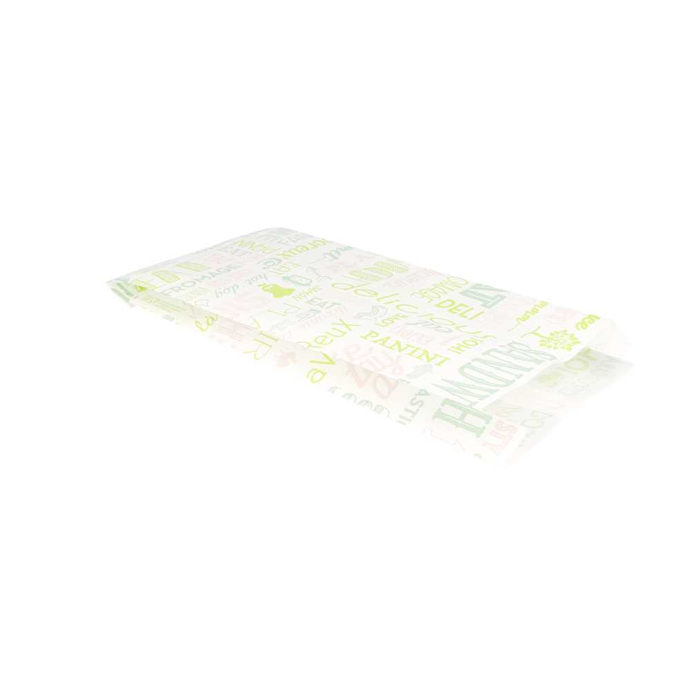 Inicio>Bolsas para alimentos>Bolsas Para Bocadillos>Bolsa para sándwiches papel blanco diseño verde «PAROLE»
