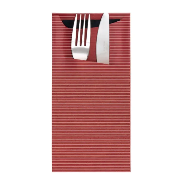 Bolsas cubiertos + servilleta ‘just in time’ 80 + 10 pe g/m2 11,2×22,5 cm burdeos kraft verjurado