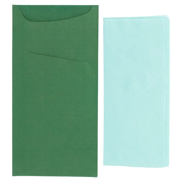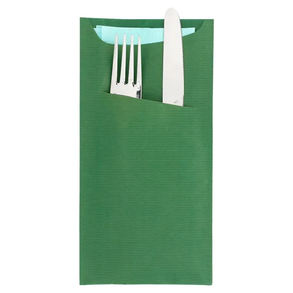 Bolsas cubiertos + servilleta ‘just in time’ 80 + 10 pe g/m2 11,2×22,5 cm verde kraft verjurado