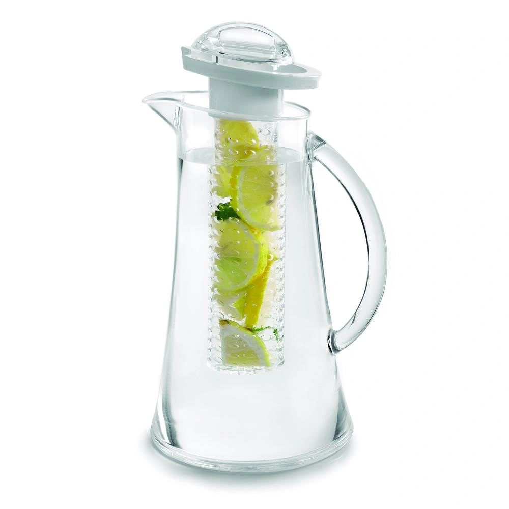 Botella infusionadora de 2,4 litros de capacidad, fabricada en material MS de alta calidad y libre de BPA para garantizar la seguridad de tus bebidas. Esta jarra infusionadora incluye un filtro que te permitirá infusionar el agua con frutas o hierbas, para que puedas disfrutar de deliciosas aguas saborizadas de forma natural y saludable.