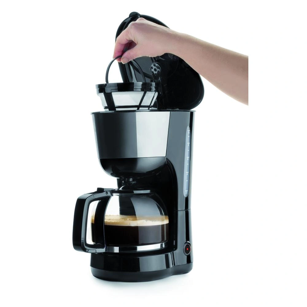La cafetera de goteo de 1,25 L es el complemento perfecto para los amantes del café. Con un sistema anti-goteo que permite servir café durante el proceso de preparación, una base calentadora antiadherente y una jarra de cristal que mantiene el café caliente, esta cafetera es ideal para disfrutar de hasta 10 tazas de café con una sola jarra. Además, cuenta con un portafiltro desmontable y un LED indicador del final del servicio. Con dimensiones de 20 x 22.5 x 31 cm y un peso neto de 1.35 Kg, esta cafetera es fácil de usar y de limpiar. Fabricada en PP y con jarra de cristal, está disponible en color negro y gris. Con una capacidad de 1.25 L, una potencia de 1000 W y una garantía de 24 meses, esta cafetera cumple con los estándares de calidad y seguridad, incluyendo certificados EMC, RoHS, LVD, EC 1935/2004 y EC 10/2011. Además, cuenta con accesorios y repuestos disponibles, como filtro, contenedor de café y jarra de repuesto. Disfruta de un café delicioso en cualquier momento con esta práctica y eficiente cafetera de goteo.