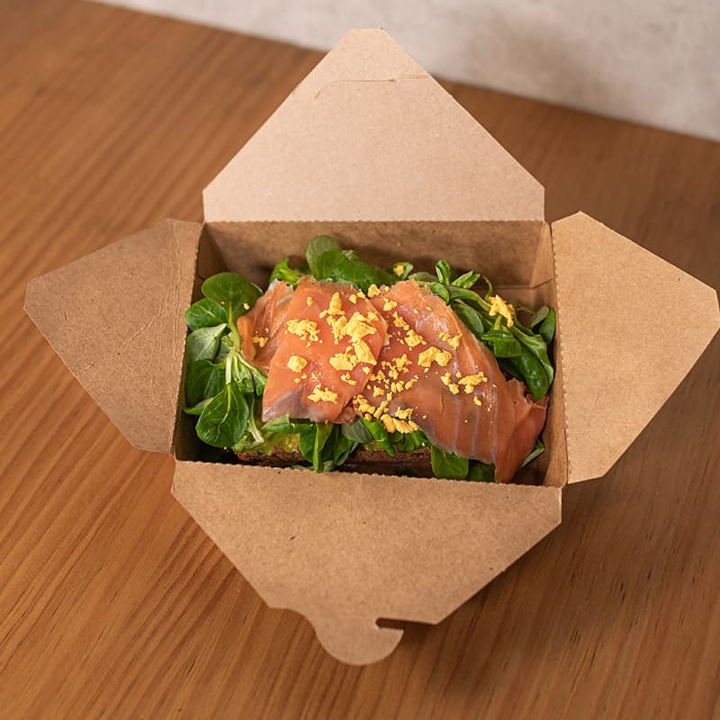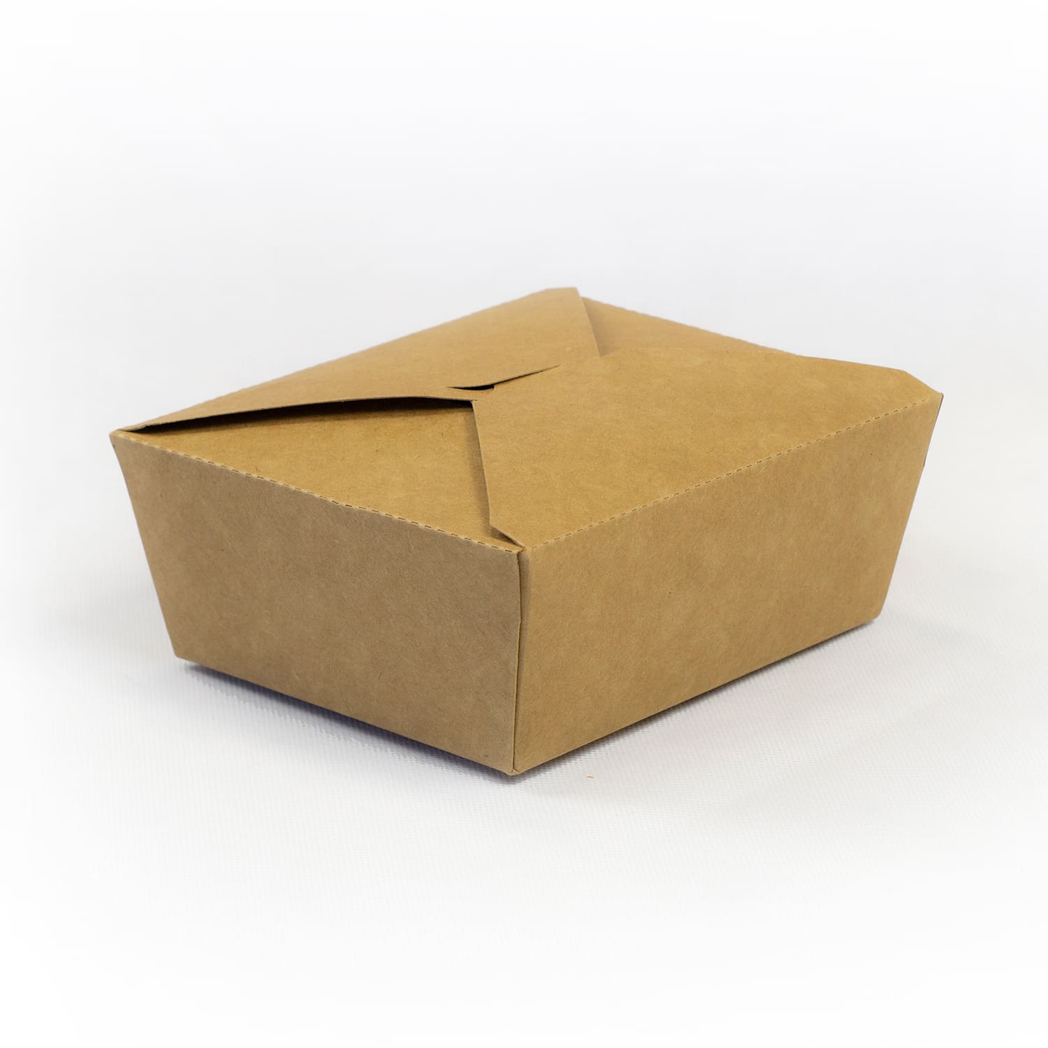 Envase de cartón con cierre de pestañas para todo tipo de alimentos y productos fríos o calientes.