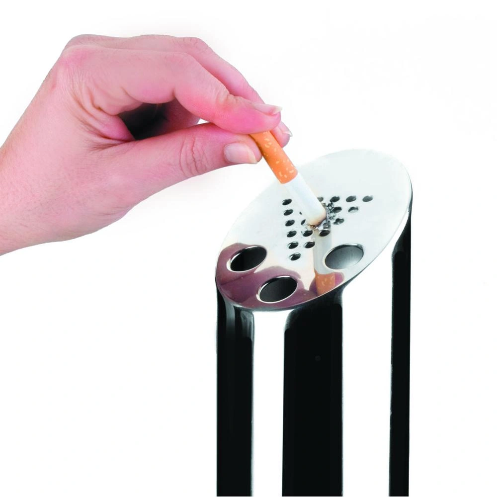 Este cenicero redondo de pared de 46×8 cm está fabricado con acero inoxidable 18/10, lo que garantiza su durabilidad y resistencia a la corrosión. Su diseño tubular le da un aspecto moderno y elegante, perfecto para cualquier espacio. La parte superior del cenicero cuenta con una zona triangular con pequeños orificios para apagar el cigarro, así como 3 orificios de mayor tamaño para depositarlo, lo que lo hace práctico y funcional.