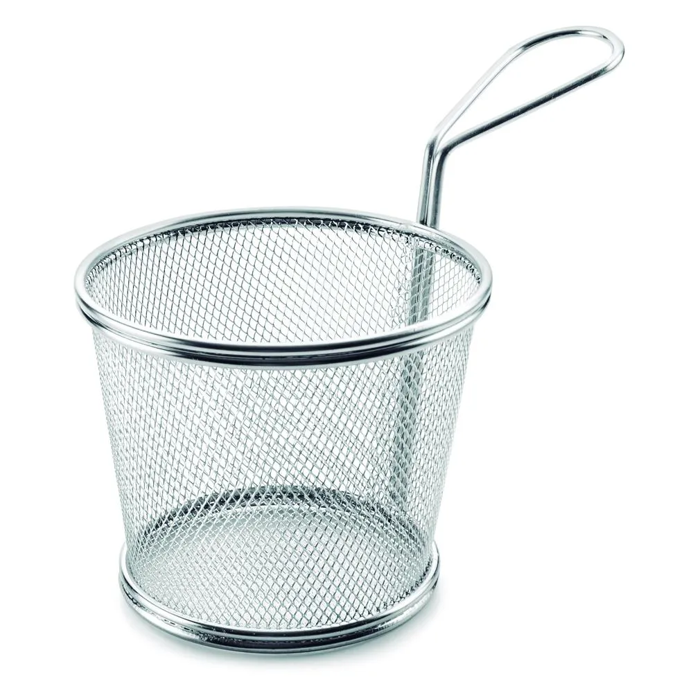 El cestillo redondo de 12×10 cm es un accesorio de cocina elegante y funcional fabricado en acero inoxidable, ideal para servir aperitivos y tapas de forma original. Con dimensiones internas de Ø12 x 10 cm, este cestillo cónico ofrece una presentación única para tus platos, ya sea sobre papel absorbente o directamente en el cestillo. Con una altura de 10 cm y un diámetro de 12 cm, este cestillo es perfecto para presentar una variedad de alimentos de manera atractiva. Su diseño versátil lo hace ideal para su uso en restaurantes, bares o en el hogar. Además, cuenta con un mango de 8.5 cm que facilita su transporte. Con una garantía de 24 meses, este cestillo es duradero y resistente, lo que lo convierte en una excelente adición a tu vajilla. Aprovecha la elegancia y la practicidad de este cestillo redondo para dar un toque especial a tus presentaciones culinarias.