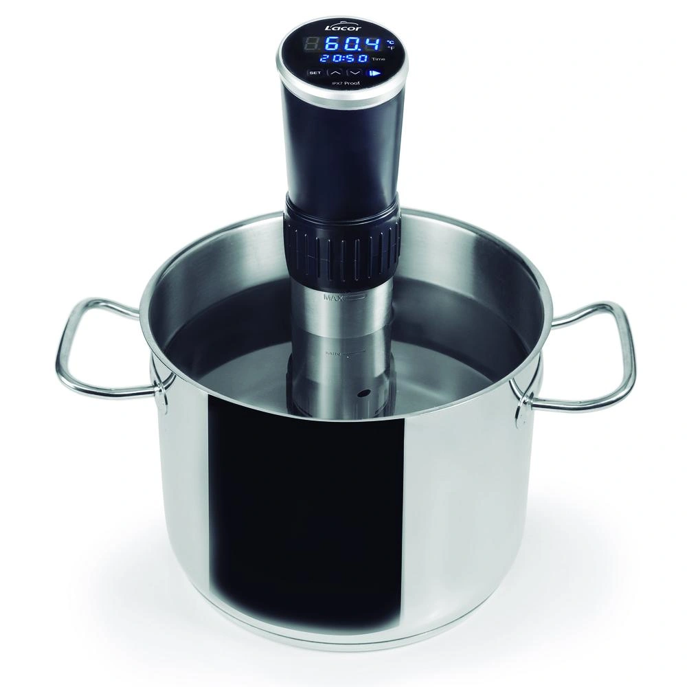 El cocedor a baja temperatura Precise es un equipo semi-profesional diseñado para cocinar al vacío con precisión y facilidad. Con capacidad para calentar hasta 30 litros de agua, este cocedor cuenta con una alta precisión de temperatura de 0.1 ºC, lo que permite cocinar los alimentos de manera uniforme y conservando sus nutrientes y sabores originales.