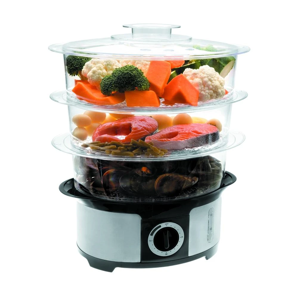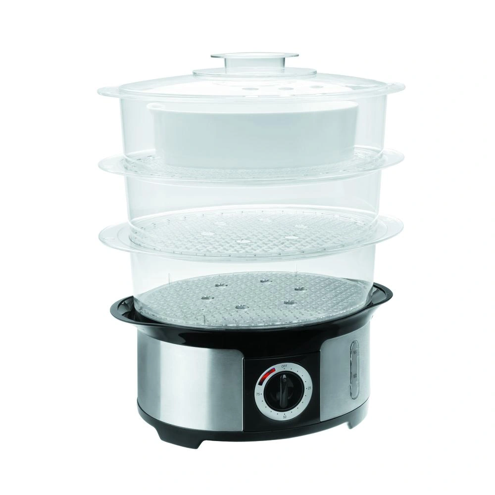 El cocedor eléctrico a vapor de 1000W es la opción perfecta para cocinar de forma saludable y práctica. Con capacidad para 12 litros, este cocedor te permite preparar varios alimentos a la vez, manteniendo sus sabores separados gracias a las propiedades aislantes del vapor. Cuenta con 3 bandejas de 25.5 x 20 cm cada una, y un regulador de temperatura para ajustar según tus necesidades.