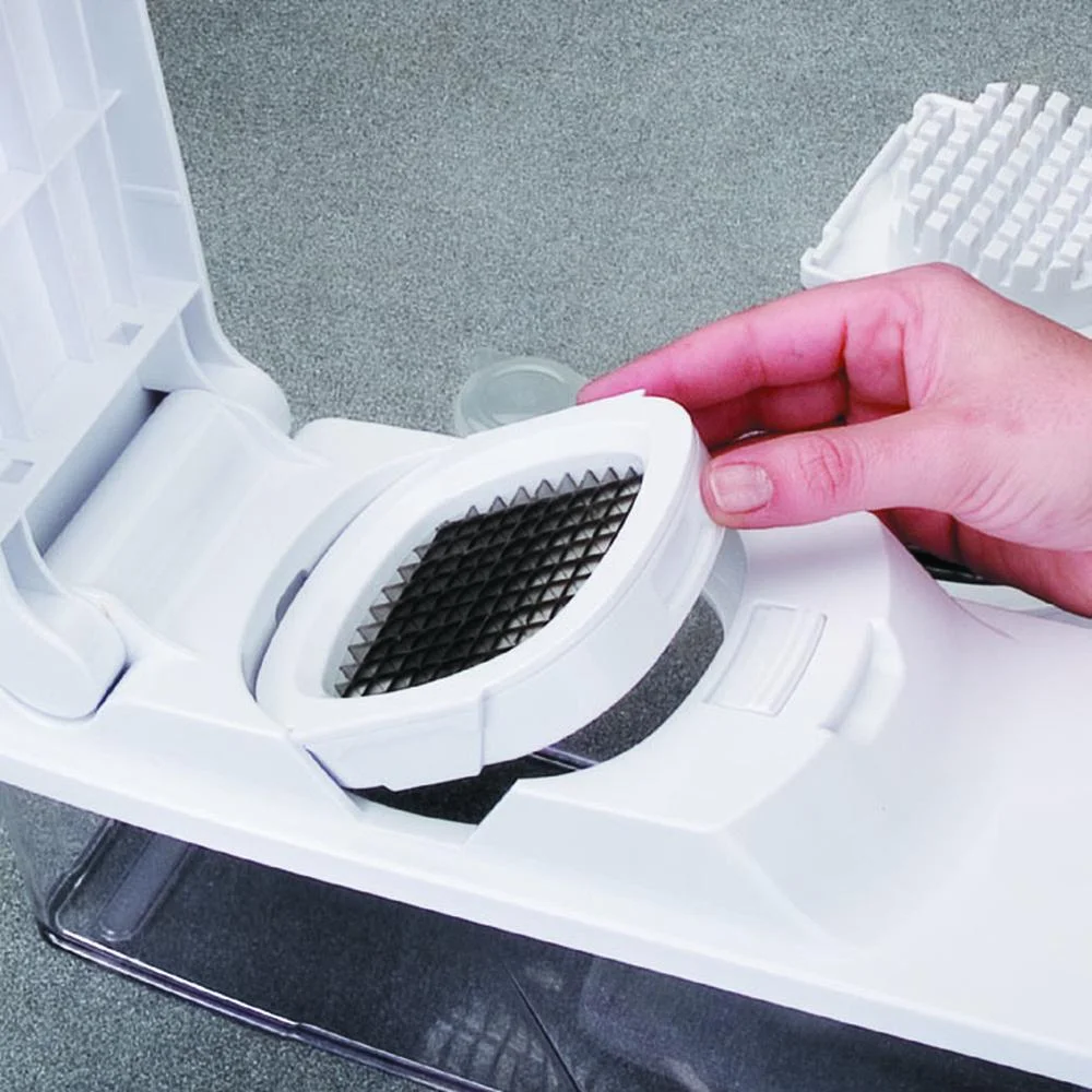 Con el cortador de verduras y chips, preparar sus comidas será mucho más sencillo y rápido. Ya sea para cortar verduras, frutas o incluso hacer chips caseros, este utensilio de cocina será su aliado perfecto en la cocina. Sorprenda a su familia y amigos con platos deliciosos y bien presentados, gracias a la versatilidad y eficiencia de este práctico cortador.