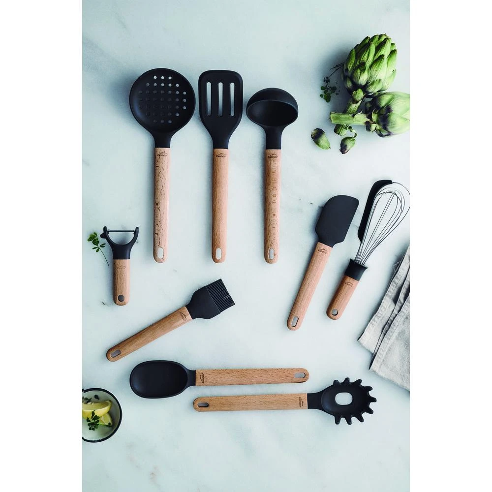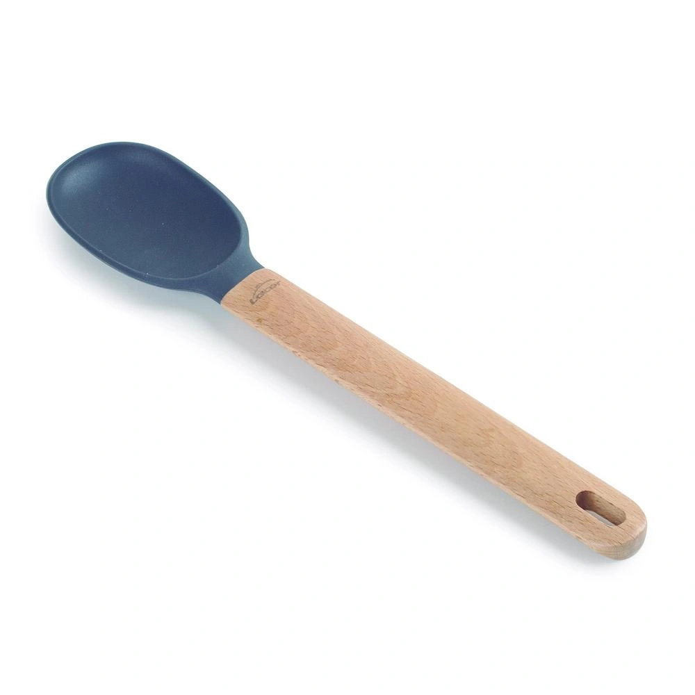 La cuchara lisa Unite es el complemento perfecto para tu cocina. Con un cabezal fabricado en silicona de alta calidad, esta cuchara protege tus sartenes, cacerolas, ollas, etc. evitando ralladuras y daños. Su mango ergonómico y antideslizante está fabricado en madera de haya, lo que la hace cómoda de usar y fácil de manipular. Además, su diseño permite colgarla para tenerla siempre a mano.