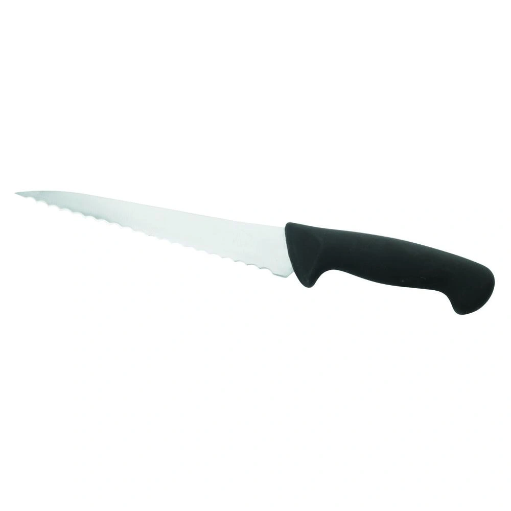 Fabricado con material de alta calidad 5CR15MOV + ABS, este cuchillo es resistente y duradero. Con una longitud de mango de 14.5 cm, un espesor de cuchilla de 2 mm y una longitud de cuchilla de 20 cm, este cuchillo pan estampado es una adición imprescindible a cualquier colección de utensilios de cocina.