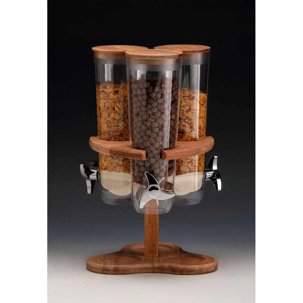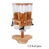 Con unas medidas de 26x26x45 cm, este dispensador de cereales es compacto y fácil de colocar en cualquier espacio de tu establecimiento. Su diseño elegante y funcional combina comodidad y estilo, aportando un toque de sofisticación a tu área de desayuno o buffet. Además, su sistema de triple giro permite un acceso sencillo a los cereales, facilitando su uso y mantenimiento.