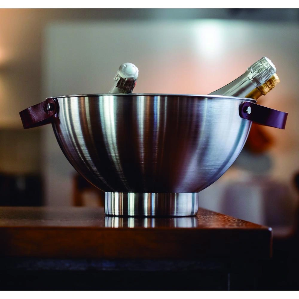 Este enfriador es muy cómodo de desplazar gracias a sus dos asas de cuero de piel vacuno, con un acabado en curtido vegetal de 3 mm de grosor. Además, su acabado exterior e interior lijado le da un aspecto moderno y sofisticado.