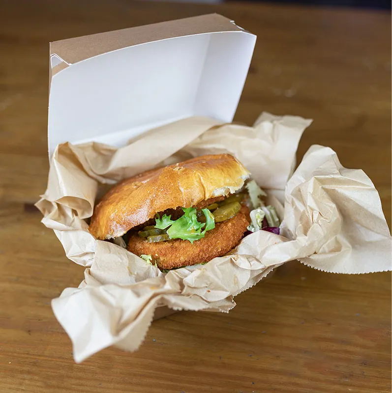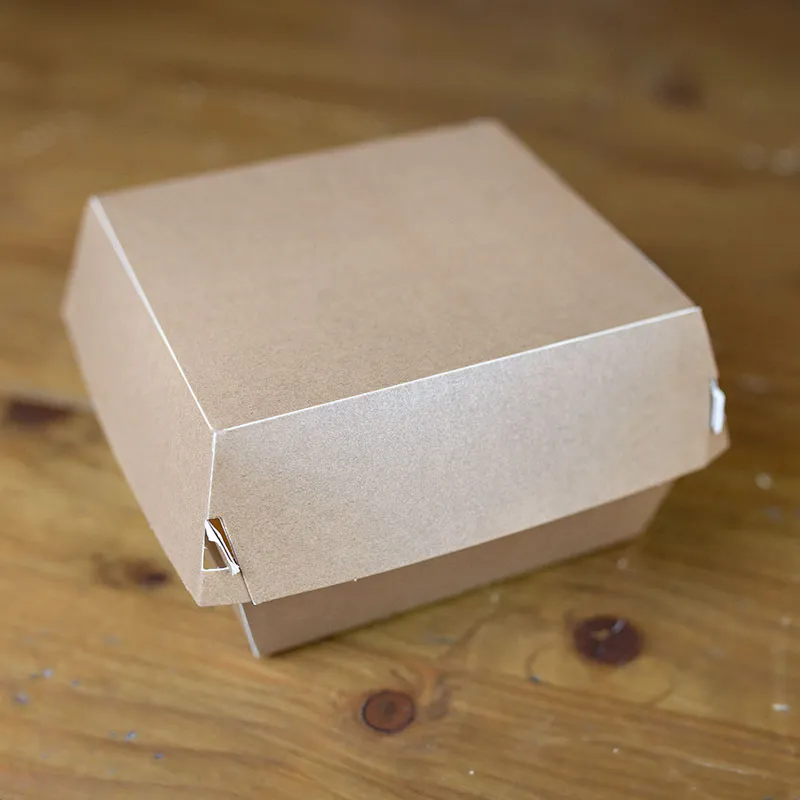 El envase para hamburguesa pequeño es nuestro favorito para ofrecer una experiencia clásica a nuestros clientes debido a su diseño vintage. Está fabricado con cartón marrón reciclado, reciclable, biodegradable y compostable, y lo recomendamos especialmente para comida rápida, como por ejemplo hamburguesas, pero también para patatas, Nuggets, y otros entrantes.   Su diseño sencillo y de apariencia industrial le da ese toque clásico que tanto nos gusta, sin por eso renunciar a la solidez y practicidad que nos ofrecen los materiales kraft reciclados en color marrón de los que está compuesto.   Los principales beneficios de nuestro envase para hamburguesa son: