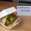 Envase fabricado en caña de azúcar para comida rápida, como hamburguesas, patatas y otros entrantes.