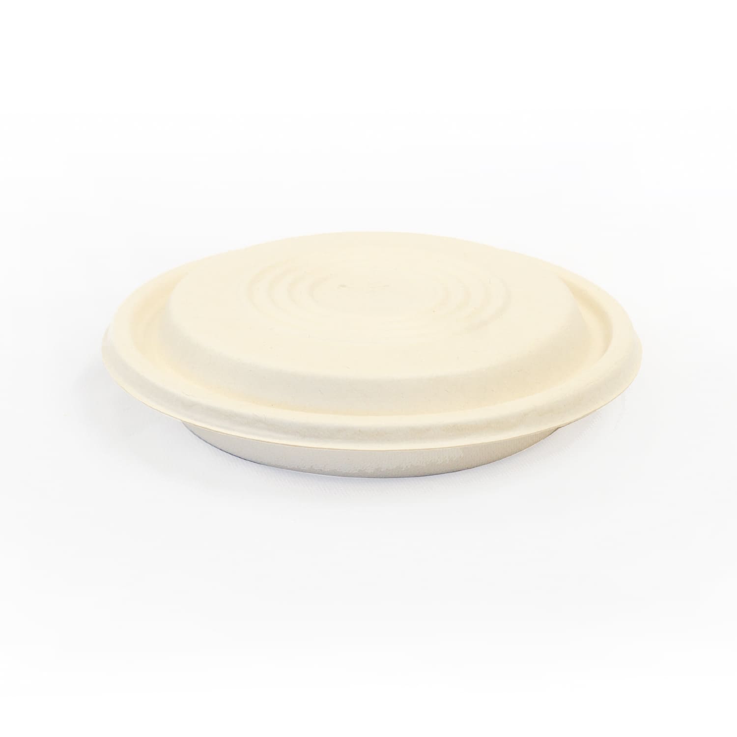 Envase redondo bajo fabricado en caña de azúcar en color marrón perfectos para platos elaborados, ensaladas, arroces y cremas. Cierre de gran seguridad y envase estanco (apto para líquidos).