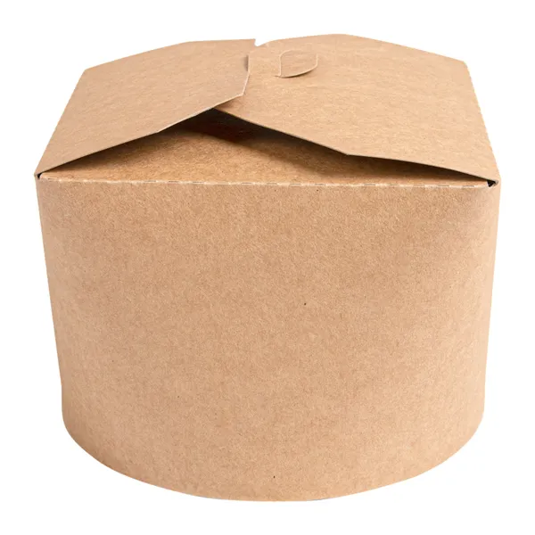 Envases con tapa incorporada, perfectos para cualquier tipo de alimento. Su cierre de solapas permite servir comida para llevar en servicios de takeaway o delivery. Su diseño original, con base redonda y parte superior cuadrada, le da un aspecto moderno y elegante. Son ideales para ensaladas, arroces, pastas y cualquier plato con salsa, ya que son resistentes a los aceites y grasas, sin fugas ni humedad. Fabricados en cartoncillo, son reciclables y aptos para microondas. Combina originalidad y atractivo sin perder los detalles clave del producto.
