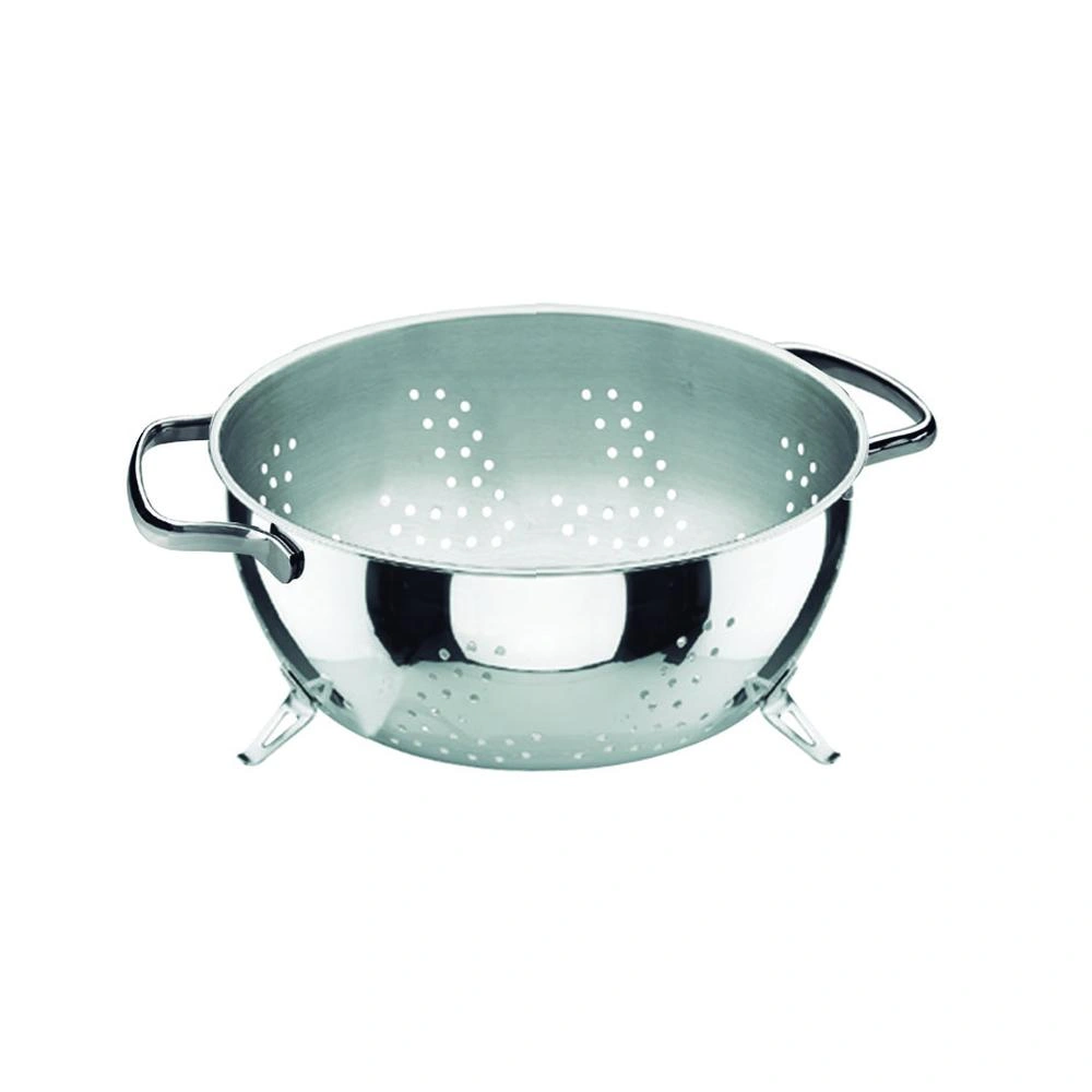 La escurridora de 24 cm Basic es un accesorio de cocina fabricado en acero inoxidable de alta calidad, con un acabado exterior lijado satinado e interior pulido brillante que le da un aspecto elegante y duradero. Con un diámetro de orificios de 3.5 mm, esta escurridora es perfecta para escurrir todo tipo de alimentos, desde pasta hasta verduras.