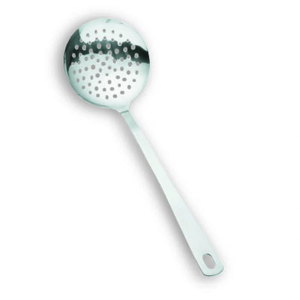 La espumadera inoxidable es un utensilio de cocina imprescindible para extraer la espuma de los líquidos o los fritos de la sartén de manera rápida y eficiente. Fabricada en una sola pieza de acero inoxidable 18/10, esta espumadera es extremadamente robusta y duradera, lo que la hace perfecta para uso profesional en restaurantes o cocinas industriales.