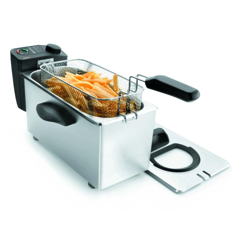 La freidora eléctrica de 3.5 litros y 2000 W es un electrodoméstico ideal para cocinar frituras de forma rápida y sencilla. Fabricada en acero inoxidable, cuenta con un cestillo para freír con capacidad para 3.5 litros de aceite, asas laterales de transporte y un mango termo resistente para un manejo seguro. El termostato de trabajo y de seguridad de rearme manual viene con interruptor de seguridad para un uso confiable.