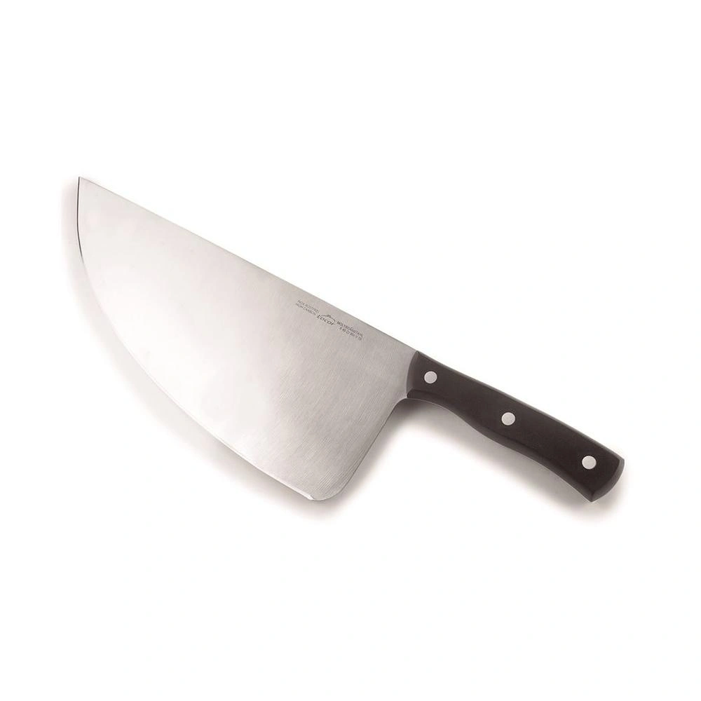 La macheta de pescadería de 29 cm está diseñada para ofrecer durabilidad y eficiencia en el corte de alimentos duros, huesos, nervios y cartílagos. Fabricada en acero inoxidable con una dureza de HRC56+/-2, garantiza un corte preciso y resistencia a la corrosión. El mango de ABS con remaches en acero inoxidable anti-corrosión proporciona un agarre cómodo y seguro. Con un equilibrio y balance de pesos que favorece el corte, esta macheta es ideal tanto para uso doméstico como profesional. Con una longitud de 17 cm y un peso neto de 450 g, es fácil de manipular y almacenar. Con una garantía de 24 meses, esta macheta es una herramienta confiable y duradera para la cocina. Las dimensiones del artículo son 30×8.2×1 cm, con un mango de 13 cm de longitud y un espesor de cuerpo de 4 mm, cumpliendo con los estándares de calidad y seguridad alimentaria (EC 1935/2004).