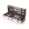 El set incluye una espátula, un tenedor, una pinza, un cepillo de limpieza y un cepillo para untar, todos fabricados en acero inoxidable de alta calidad para garantizar su durabilidad y resistencia a la corrosión. Los mangos de los utensilios están diseñados para proporcionar un agarre cómodo y seguro, lo que te permite manipular los alimentos con facilidad y precisión.
