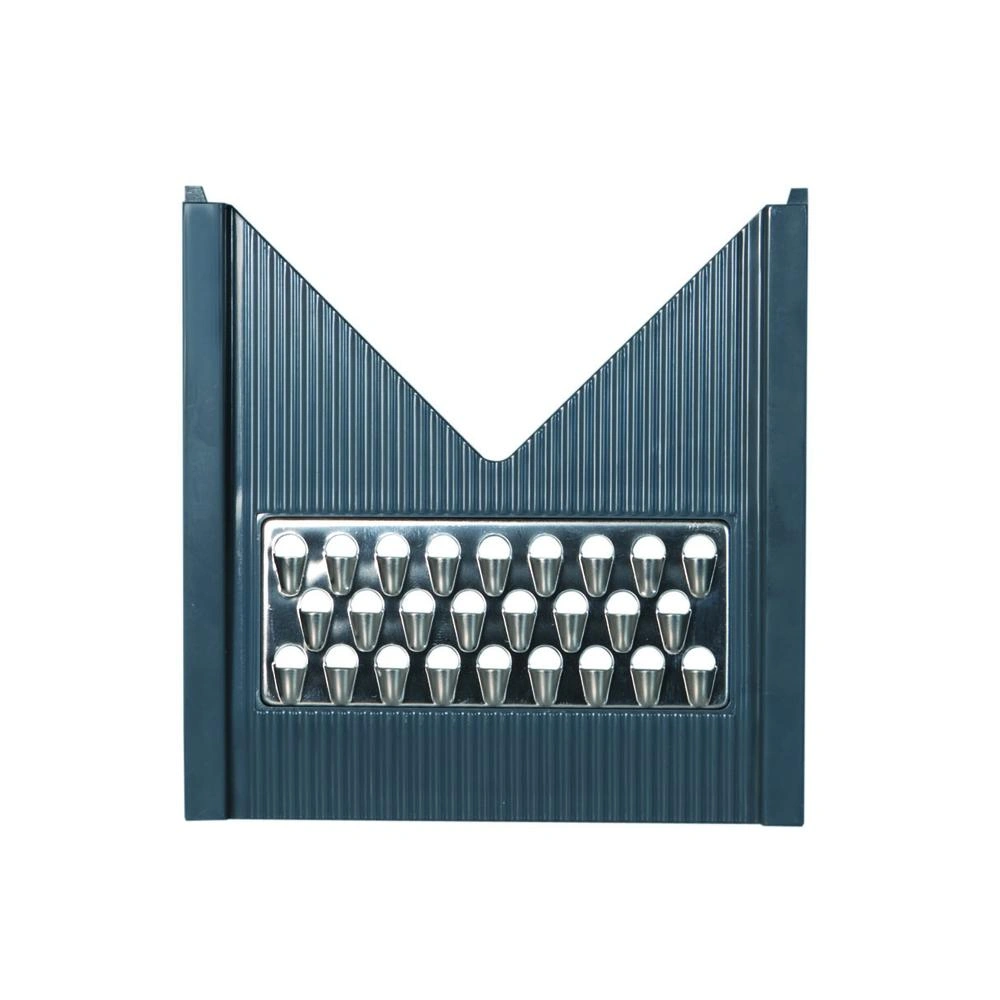 La mandolina gris de corte «V» es un utensilio de cocina robusto y funcional que te permitirá cortar tus alimentos de forma rápida y precisa. Con su rueda de selección de espesor, podrás elegir el grosor de corte o el tipo de juliana que deseas obtener, desde 1 hasta 9 mm. Sus cuchillas extremadamente afiladas proporcionan un corte homogéneo y preciso, y vienen con 5 opciones diferentes: cuchilla lisa, cuchilla ondulada, rallador fino, rallador medio, rallador grueso, corte en juliana de 6 mm y corte en juliana de 9 mm. Además, incluye un accesorio para exprimir.