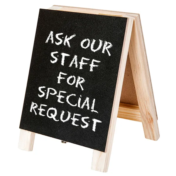 Descubre lo que buscan otros usuarios en relación con Mini pizarras de tijera 2 caras 10×14 cm negro madera