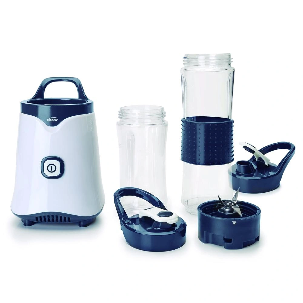 El Personal Blender Mix & Go es un práctico y versátil electrodoméstico que te permite preparar tus batidos, smoothies, jugos y otras bebidas favoritas de forma rápida y sencilla. Con dos jarras portátiles de 600-300 ml de tritán libre de BPA, podrás llevar tus bebidas contigo a donde quieras. Las jarras cuentan con una banda de silicona antideslizante, tapa con boquilla y clip para transportar, lo que las hace ideales para llevar al gimnasio, la oficina o de viaje.