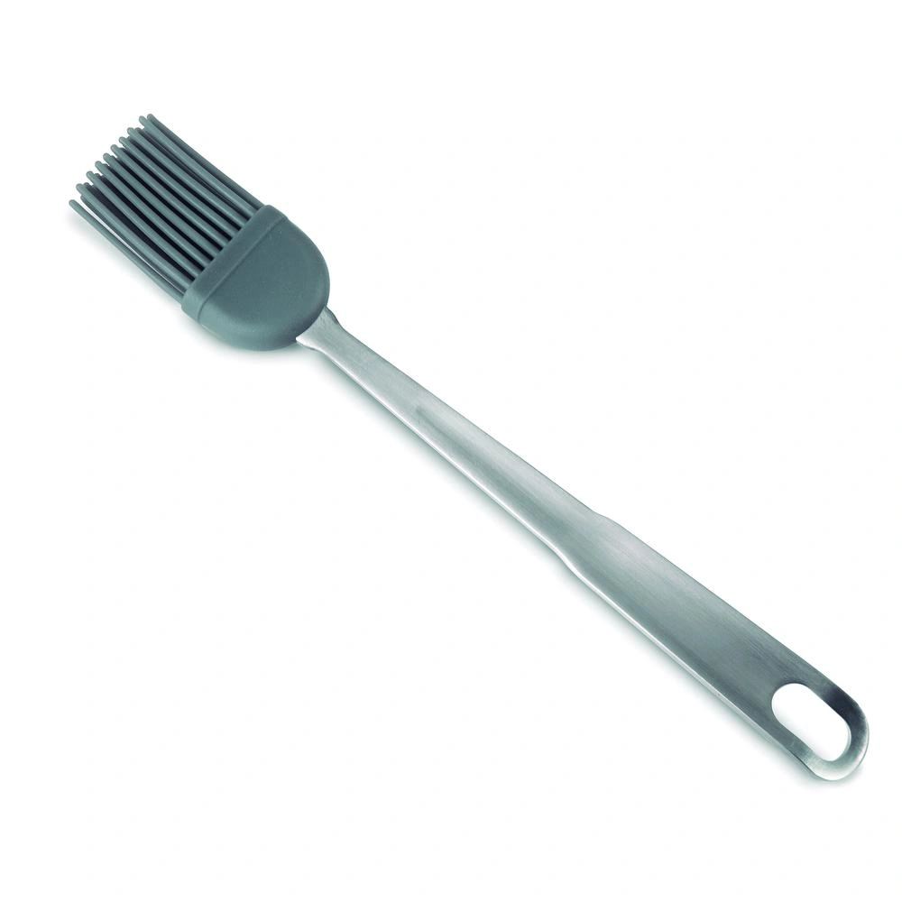 El pincel de silicona estrecho M/Inox 25 P. es el accesorio perfecto para untar fácilmente aceite, mantequilla, caramelo, nata, huevo, y más, en tus comidas. Con cerdas de silicona resistentes a altas temperaturas de hasta 210°C, este pincel es ideal para usar en la barbacoa o en el horno. El mango de acero inoxidable de 17 cm proporciona un agarre cómodo y seguro, y además cuenta con un agujero para colgarlo fácilmente.