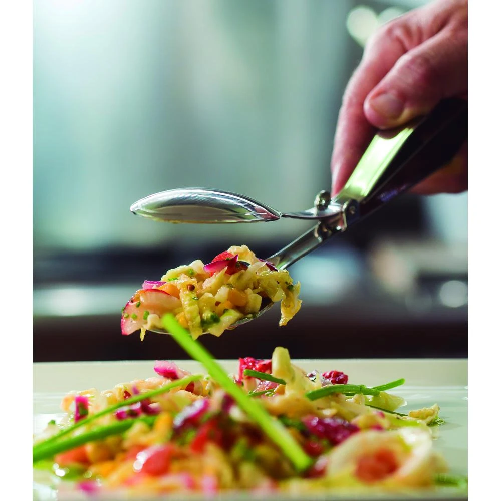 La pinza cuchara para servir de 24 cm está fabricada en acero inoxidable 18/10, lo que la hace resistente y duradera. Es el utensilio perfecto para servir ensaladas, verduras y otros platos, gracias a su diseño ergonómico y su tamaño ideal. Con un espesor de cuerpo de 1.5 mm, cumple con las normativas de seguridad alimentaria EC 1935/2004.