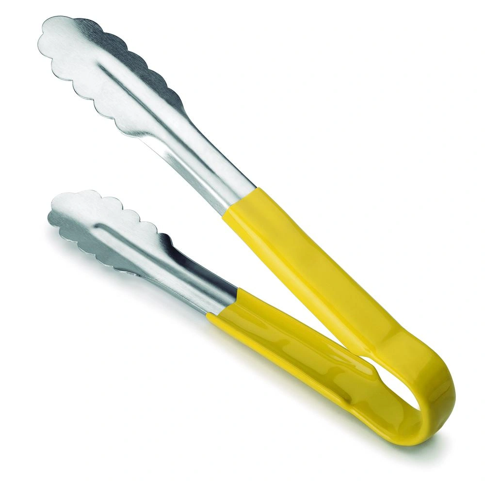 La pinza monoblock amarilla de 24 cm de la marca KARU es un utensilio de cocina imprescindible para cualquier cocinero. Fabricada en acero inoxidable 18/10 de alta calidad, esta pinza es resistente y duradera. Su mango está revestido con una capa de ABS aislante térmica que proporciona una mejor sujeción y evita quemaduras. Además, está disponible en distintos colores, siendo el amarillo el protagonista de esta versión.