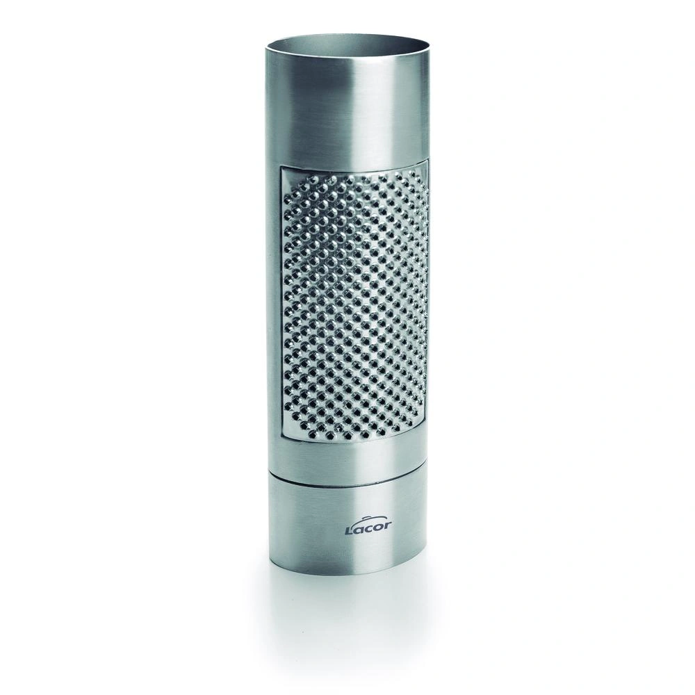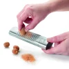 El rallador de nuez moscada es un utensilio de cocina fabricado en acero inoxidable, lo que lo hace resistente y duradero. Su superficie de rallado es muy afilada, lo que permite rallar con facilidad nuez moscada, ajo, cítricos y chocolate. Además, cuenta con un depósito que almacena los alimentos rallados en polvo, lo que facilita espolvorearlos sobre tus platos.
