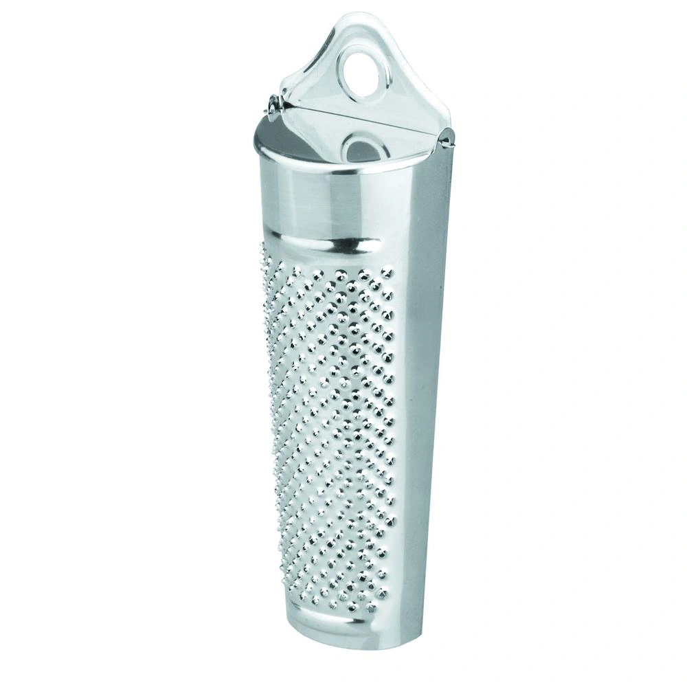 Fabricado en acero inoxidable 18/0, este rallador es resistente y duradero, garantizando un uso prolongado en la cocina. Además, su diseño elegante lo hace perfecto para usar en la mesa al momento de servir platos que requieran un toque de nuez moscada rallada.