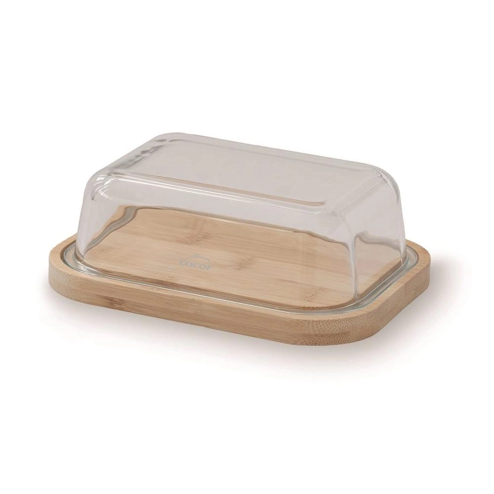 El recipiente de mantequilla de cristal es el accesorio perfecto para mantener y presentar la mantequilla de una manera elegante y funcional. Con una base de bambú 100% natural y una tapa de vidrio borosilicato de alta calidad, este recipiente mantiene la mantequilla fresca durante más tiempo, preservando su sabor, aroma y color. Con una capacidad de 640 ml, es ideal para servir directamente la mantequilla en la mesa, agregando un toque de sofisticación a cualquier comida. Además, la tapa es apta para lavavajillas, lo que facilita su limpieza. Con dimensiones de 18.3×13.8×6 cm y un peso neto de 560 g, este recipiente de mantequilla de cristal es la combinación perfecta de funcionalidad y estilo. Con una garantía de 36 meses, puedes estar seguro de la calidad y durabilidad de este producto. Además, cumple con la normativa EC 1935/2004, garantizando su seguridad y calidad. Aprovecha la oportunidad de tener un recipiente de mantequilla que no solo mantendrá tu mantequilla fresca, sino que también será un elegante accesorio en tu mesa.