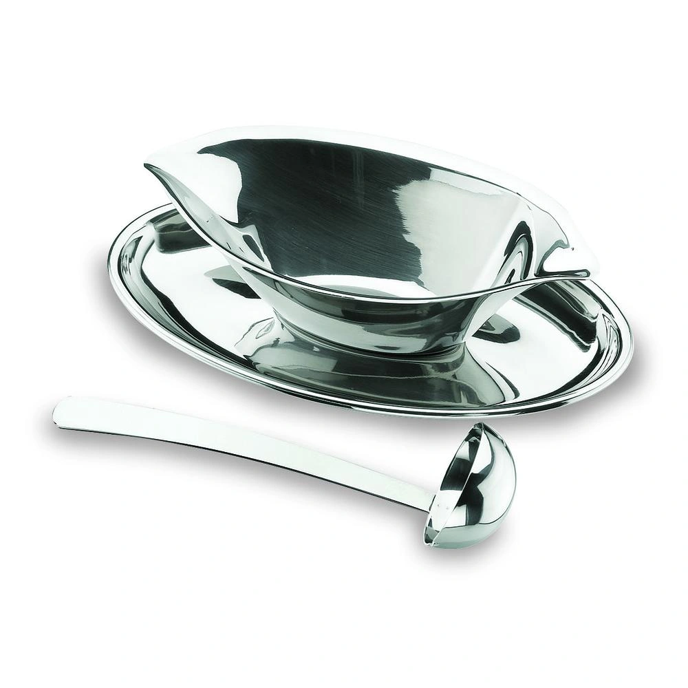Su diseño y acabado de alta calidad realzarán la presentación de sus salsas frías o calientes, complementando cualquier tipo de vajilla o decoración de mesa. Además, incluye un platillo para evitar que la salsa gotee y una cuchara de acero inoxidable para servir de forma práctica y elegante.