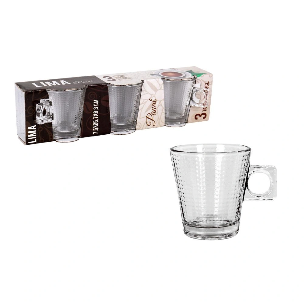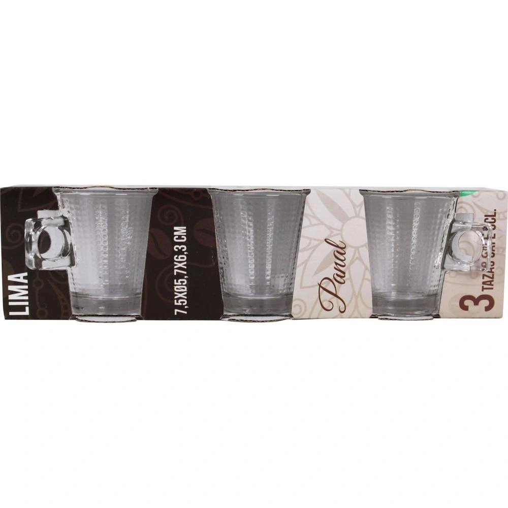 SET 3 TAZAS CAFE 8 cl LIMA PANAL VIDRIO