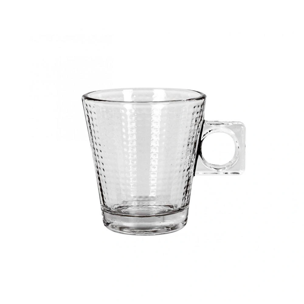Nuestras tazas de vidrio, elegantes y resistentes, son perfectas para cualquier establecimiento de hostelería. Ofreciendo calidad y estilo en cada sorbo, estas tazas son ideales para servir una variedad de bebidas, desde café hasta infusiones, mejorando la experiencia de bebida de tus clientes. Con una capacidad de 8 cl, estas tazas son perfectas para servir el café perfecto a tus clientes, manteniendo la temperatura ideal para disfrutar de cada sorbo. Su diseño en forma de panal de abeja le da un toque moderno y sofisticado, añadiendo un toque de estilo a la presentación de tus bebidas.