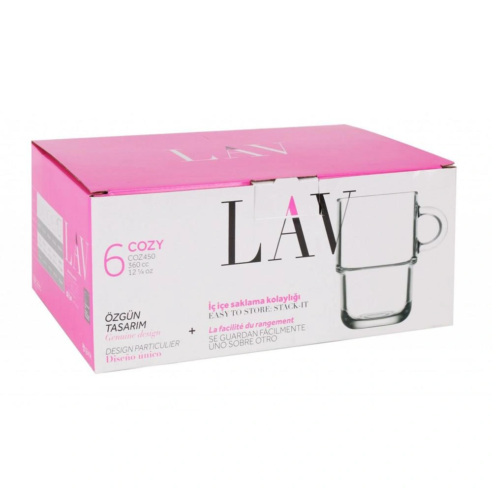Set 6 Mugs 360Cc Apilables Co Vidrio