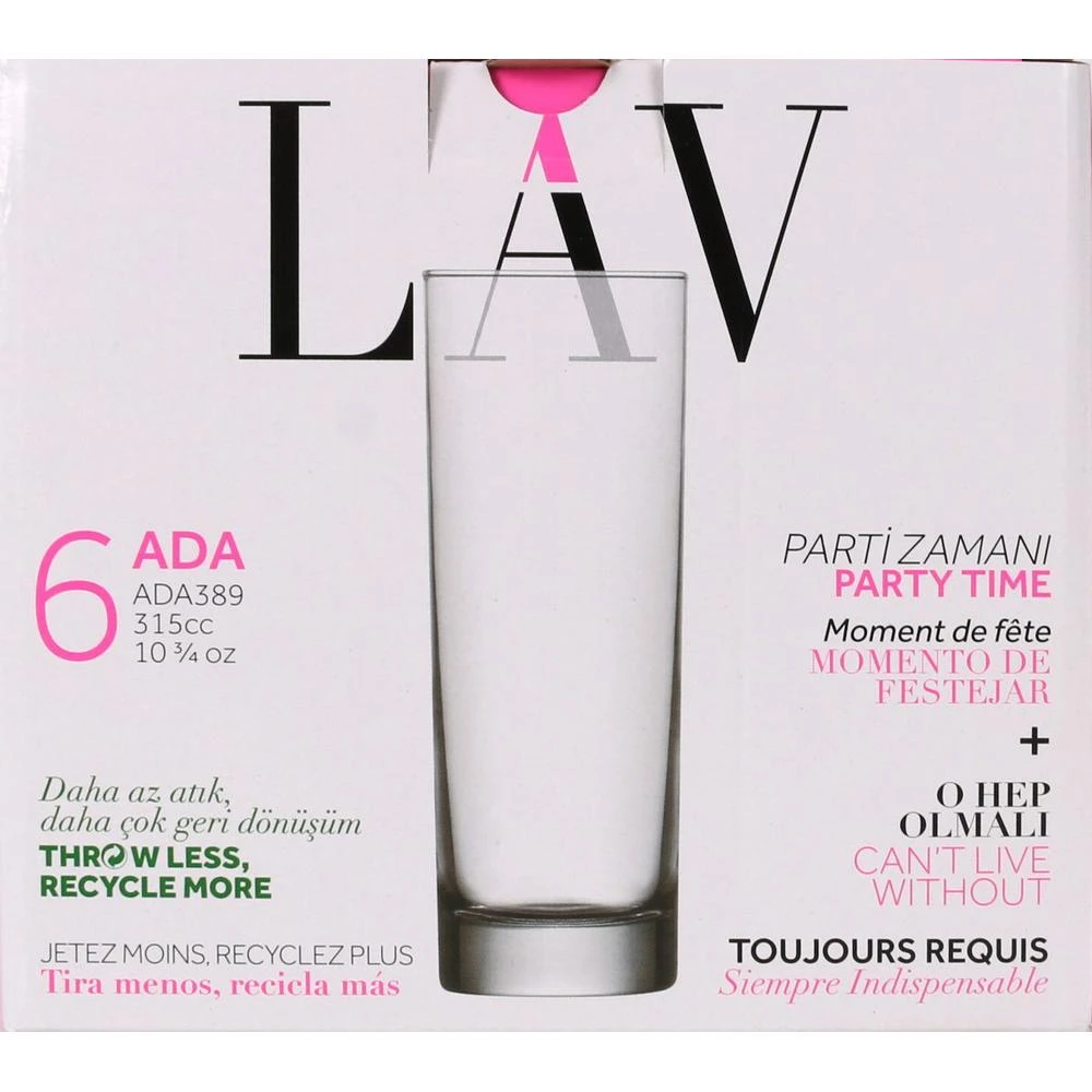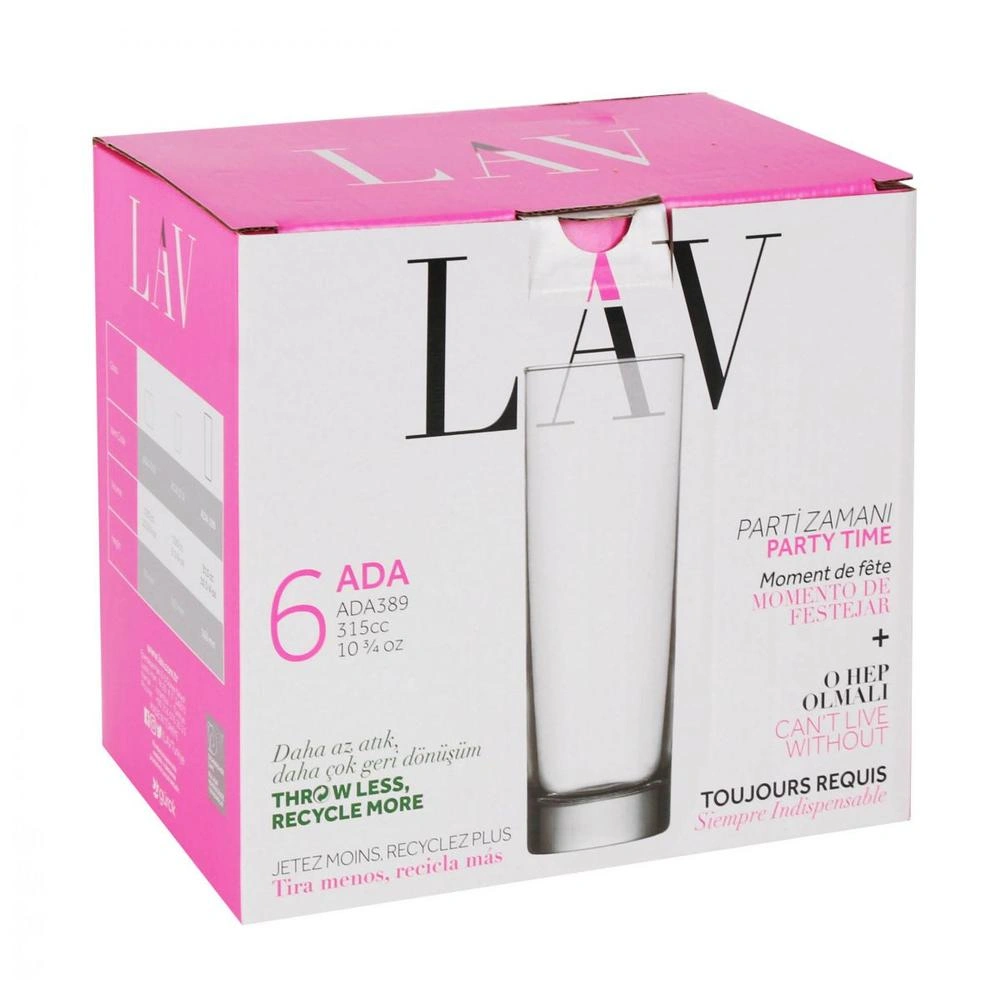Set 6 Vasos Tubo 315Cc Ada Vidrio