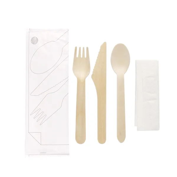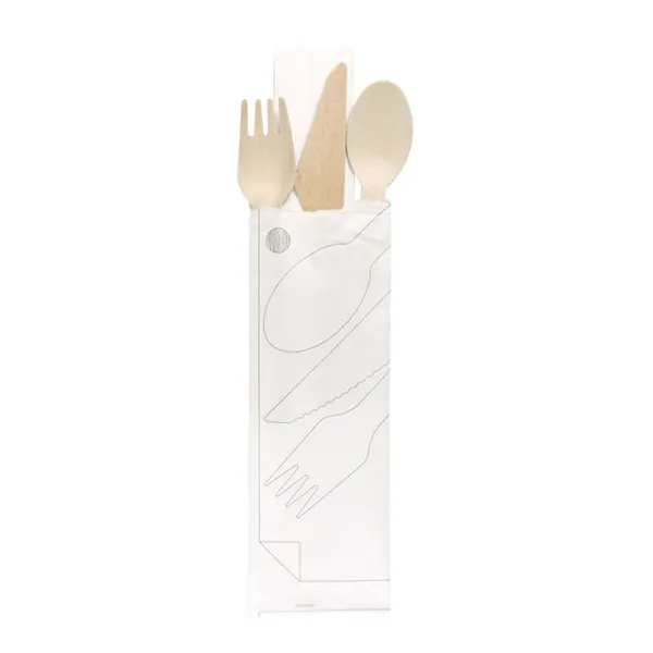 Inicio>Cubiertos Desechables>Cubiertos Desechables>Set cubiertos, servilleta enfundados ‘makan’ 16 cm natural madera