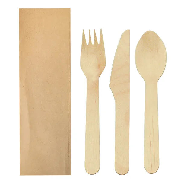Descubre lo que buscan otros usuarios en relación con Set tenedor, cuchillo, cuchara enfundados kraft ‘makan’ 16 cm natural madera