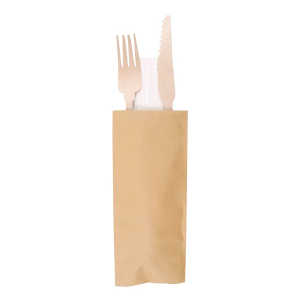 Sets tenedor+cuchillo+servilleta ‘classic’ 20 cm natural madera