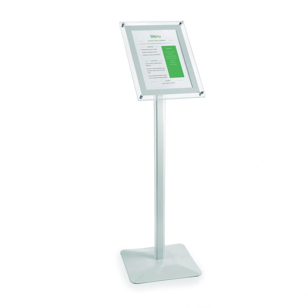 Este porta menú es apto para mostrar menús de tamaño A4, y su hoja de información es intercambiable de forma fácil, rápida y cómoda, lo que lo hace ideal para negocios de hostelería y restauración que necesitan actualizar su oferta de manera frecuente.