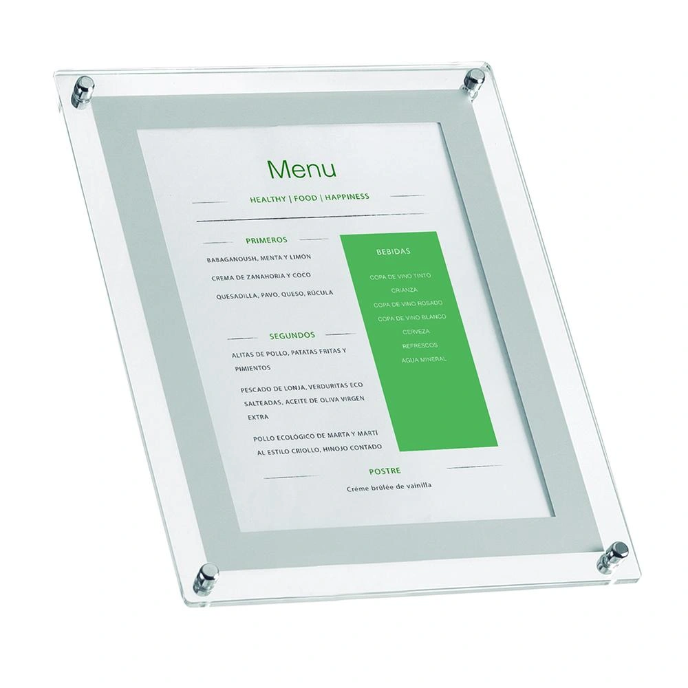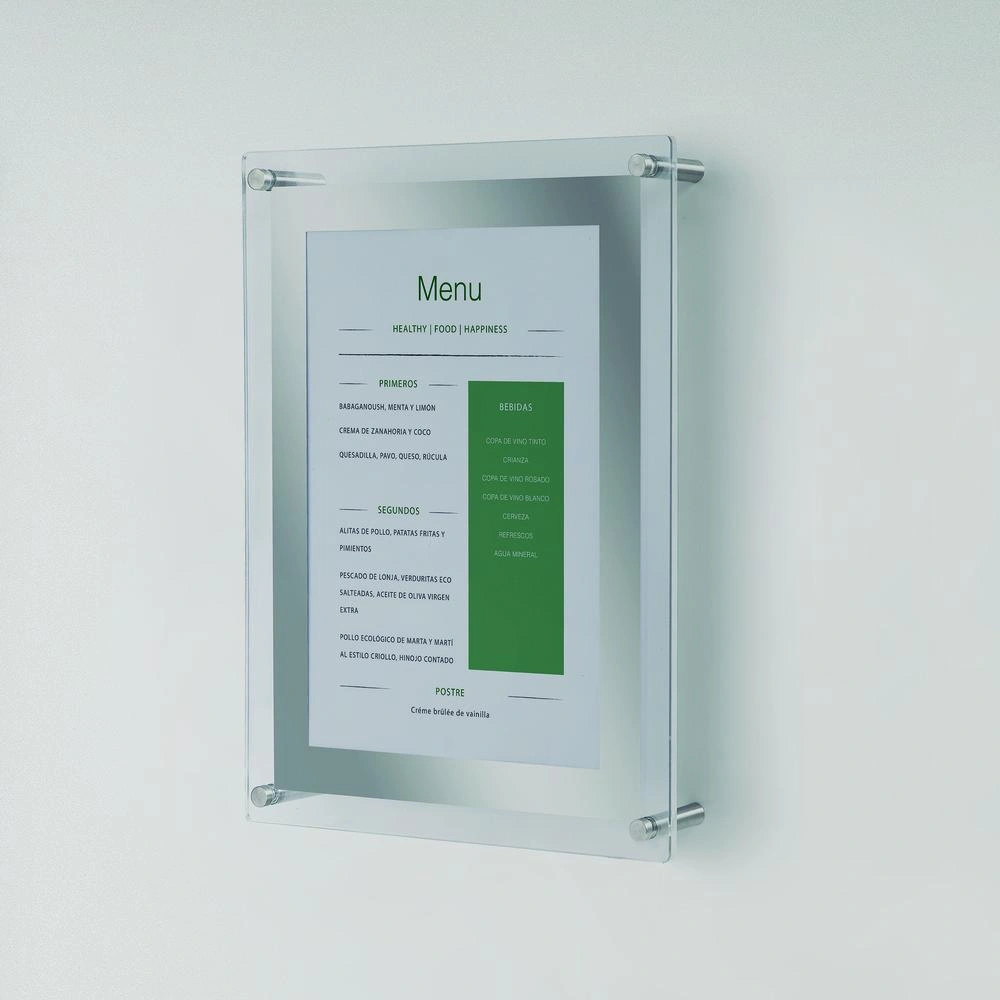 En resumen, el porta menú exterior A4 acrílico es la opción perfecta para mostrar de manera elegante y profesional la oferta de cualquier negocio de hostelería, garantizando durabilidad, versatilidad y facilidad de uso.