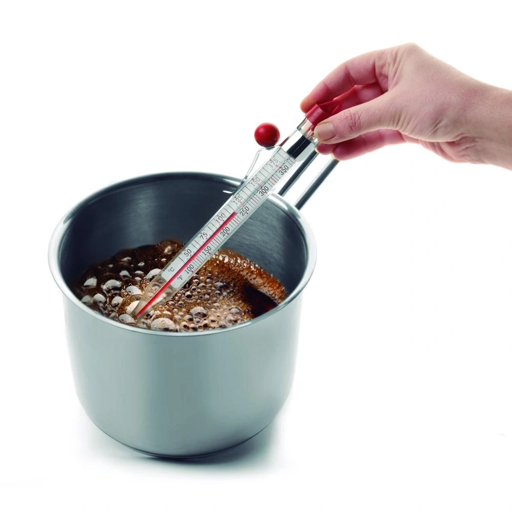 Este termómetro de azúcar es el accesorio perfecto para medir con precisión las temperaturas de cocción de azúcar, caramelo, mermelada y otros dulces. Con escalas de temperatura en grados Celsius y Fahrenheit, podrás controlar el proceso de cocción de forma precisa y obtener resultados perfectos en tus recetas.