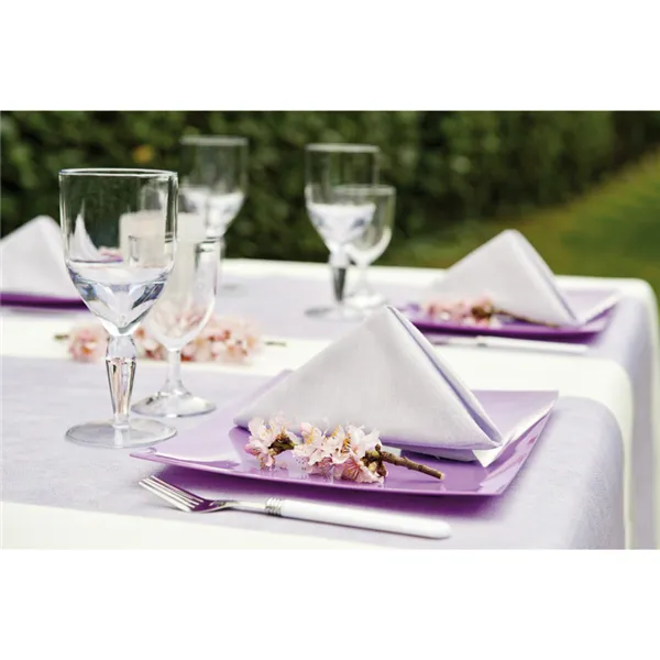 Nuestros caminos de mesa «Tête à tête» son la opción perfecta para crear un ambiente elegante en su comedor. Fabricados con una mezcla de viscosa y celulosa, nuestro Like-Linen tiene la apariencia de tela, pero con la ventaja de ser desechable. Con un ancho de 40 cm y pre cortado cada 120 cm, cada paquete incluye 20 mantelines que le facilitarán el trabajo y le permitirán olvidarse de las tintorerías. El Spunlace, un material de alta calidad, ofrece una suavidad extraordinaria y una resistencia excepcional a la humedad. Además, es respetuoso con el medioambiente al ser biodegradable y compostable, con certificación conforme a la normativa EN 13432. Añada un toque de elegancia a sus mesas con nuestros caminos de mesa «Tête à tête».